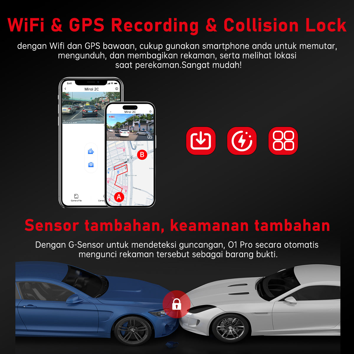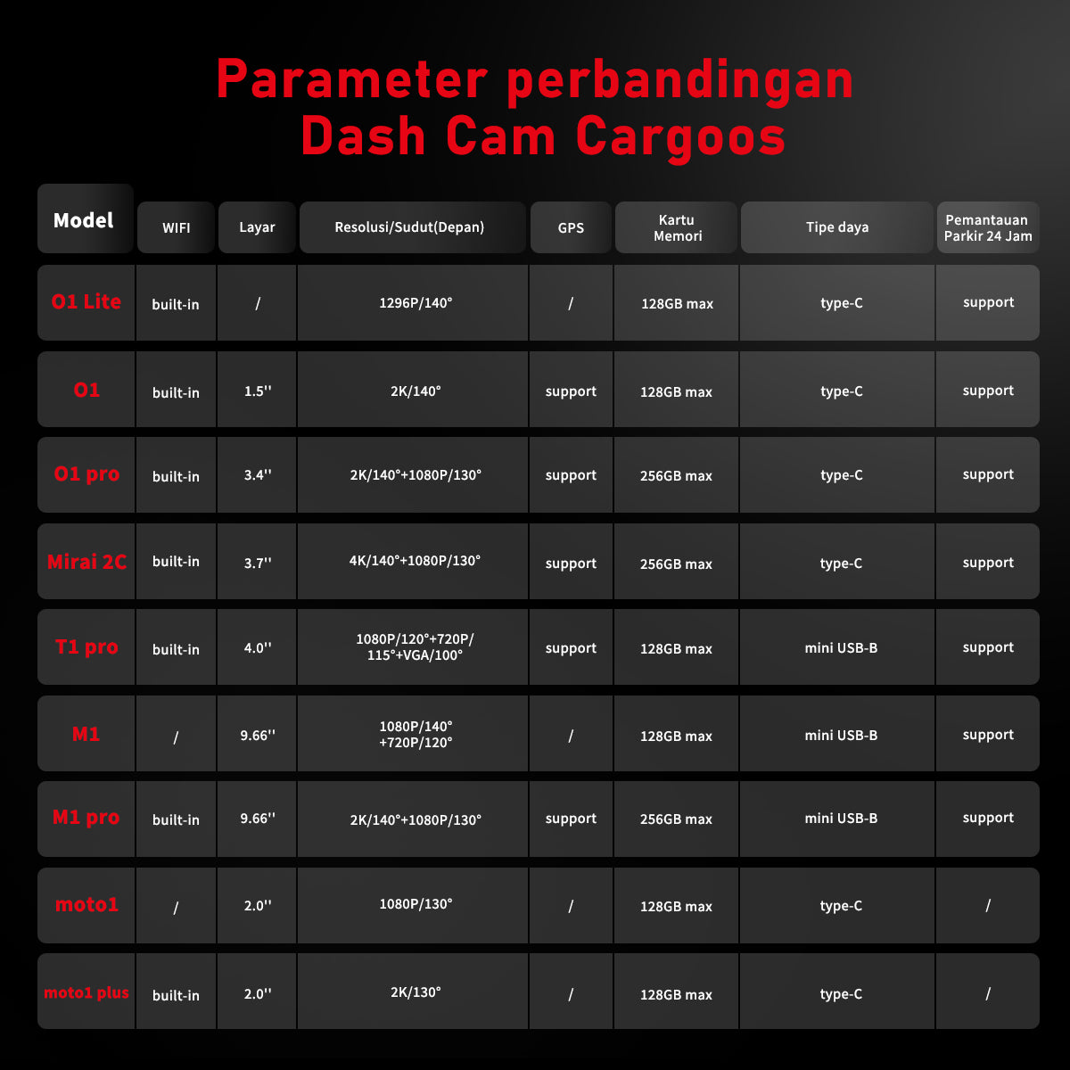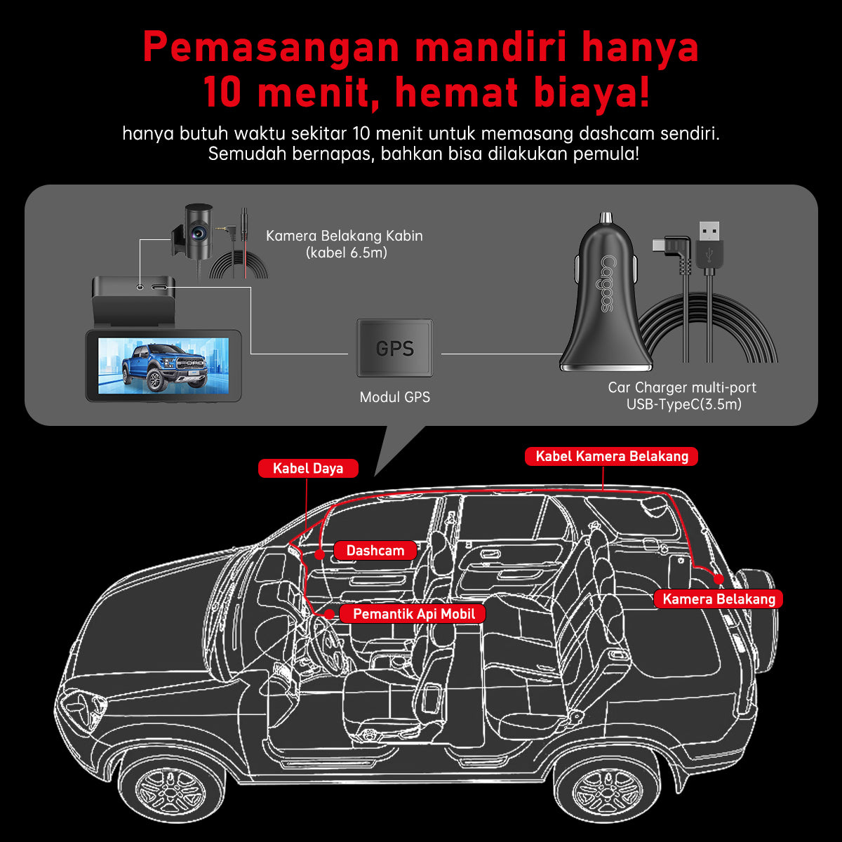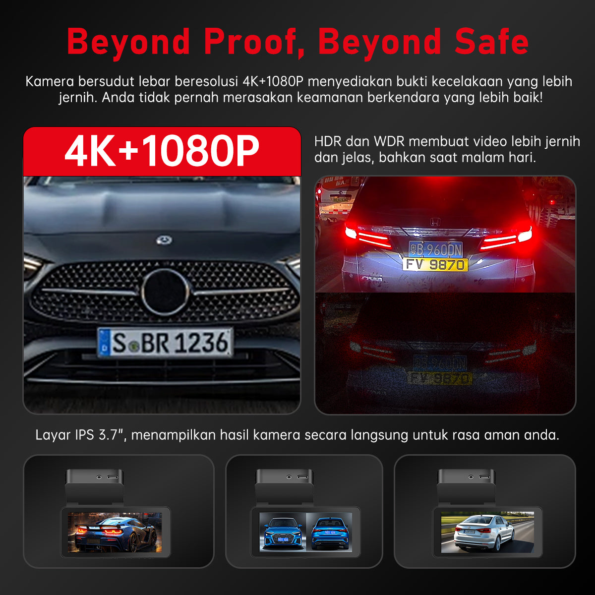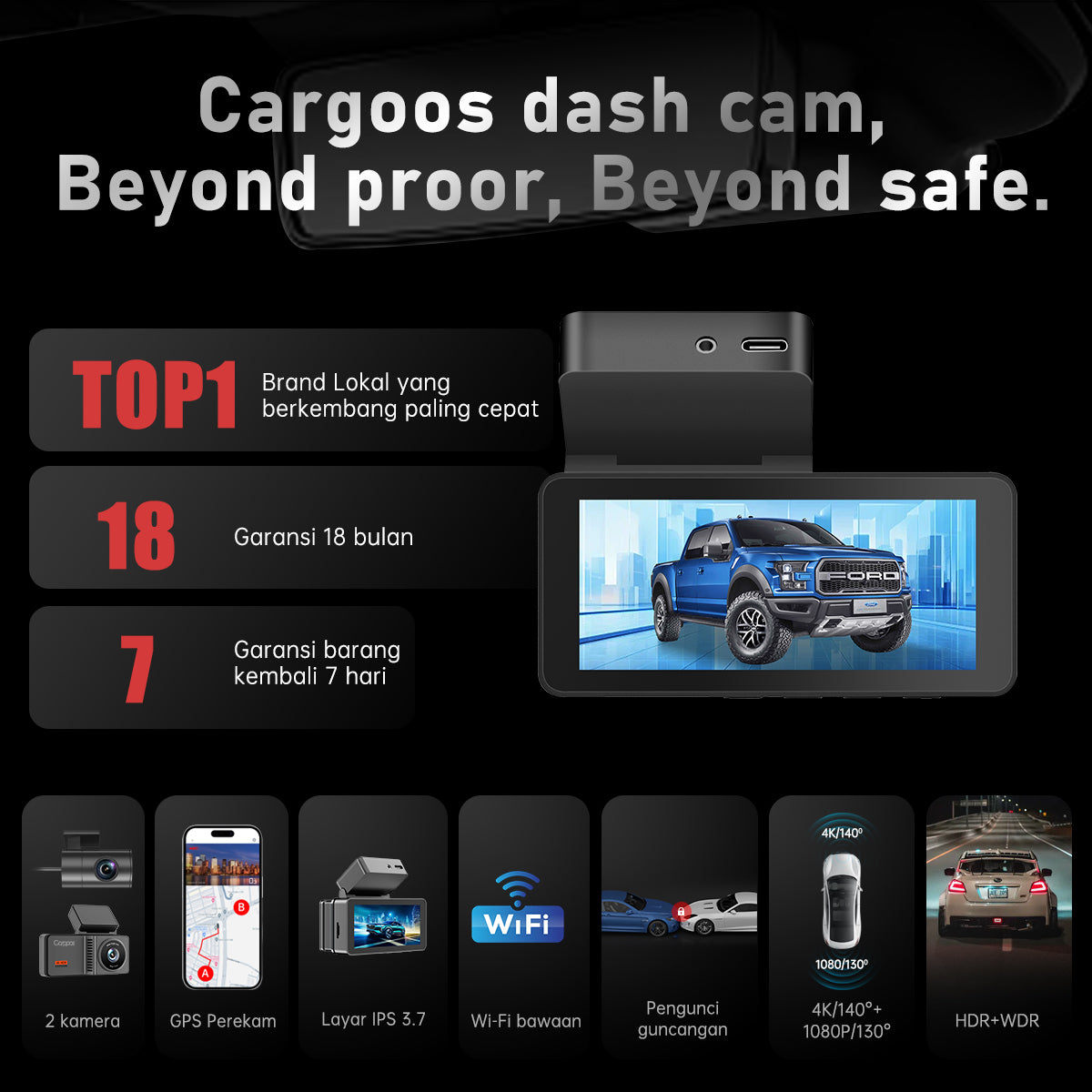 Cargoos Dashcam Mirai 2C 3.7''IPS 4K(2160P)+1080P Dual Camera WiFi Dashcam with GPS Track Playback G-sensor 24h Parking Mode
