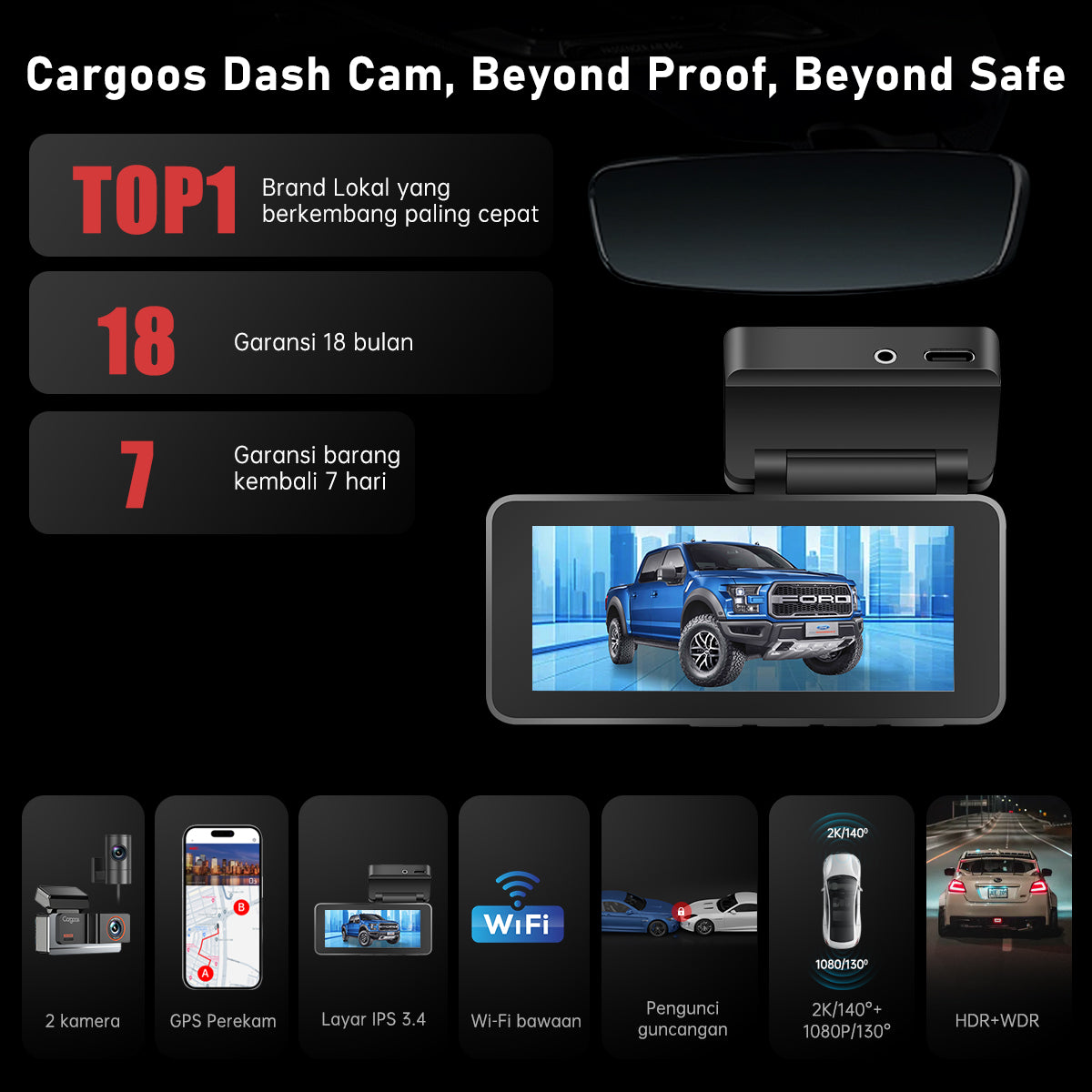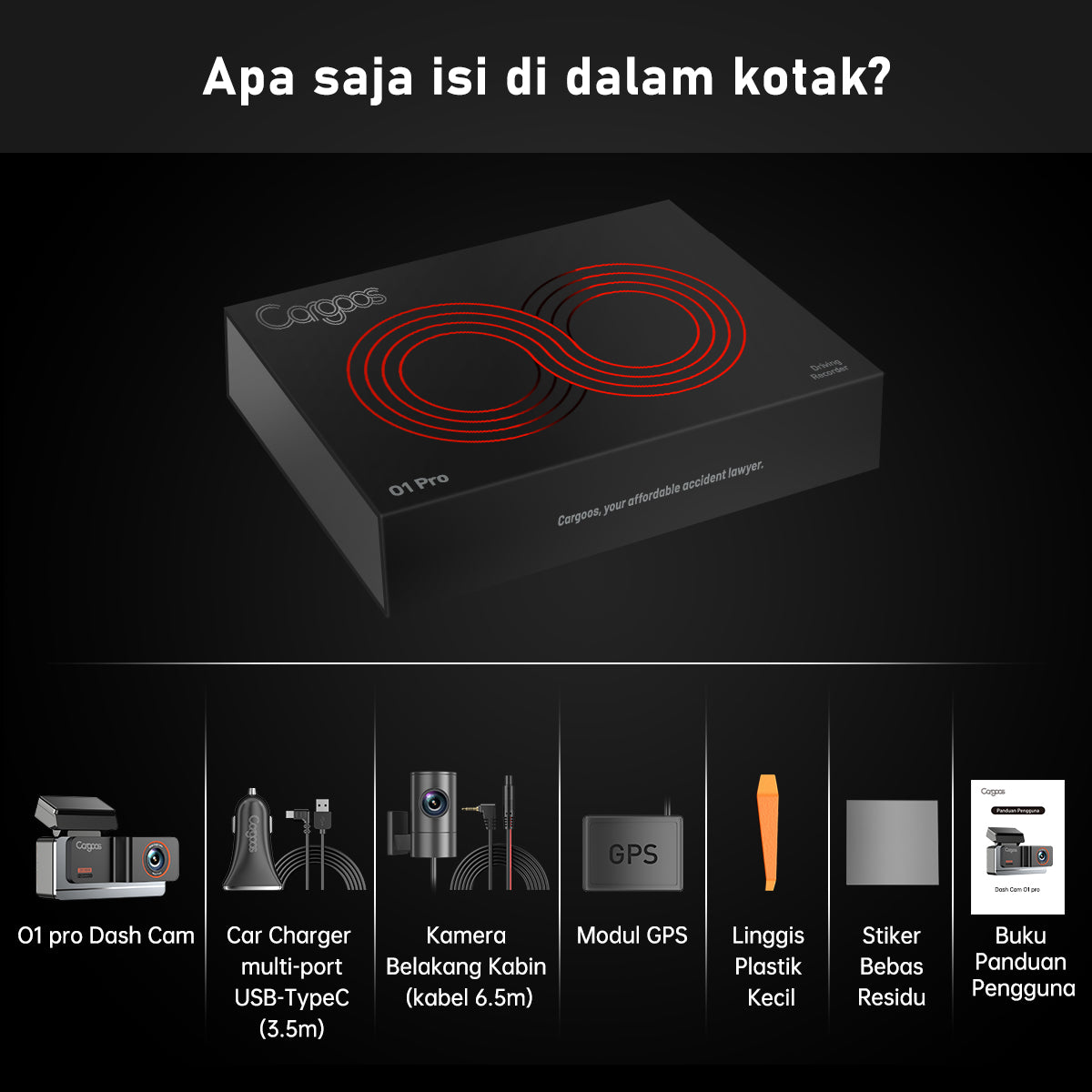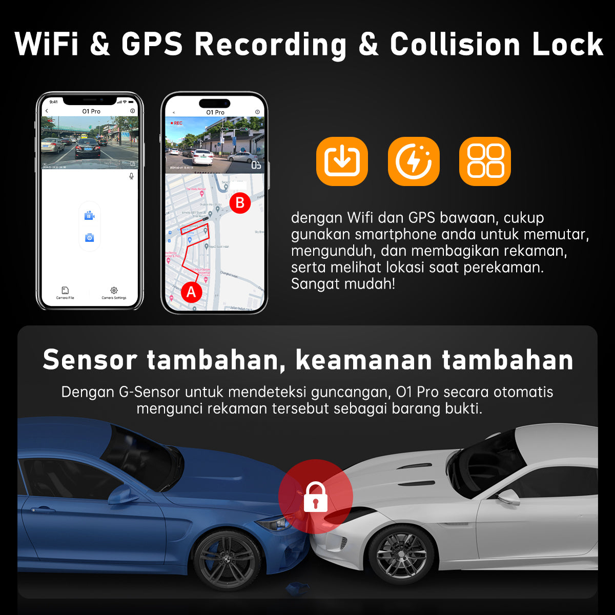 Cargoos O1 Pro Dash Cam Mobil 2k+1080p GPS Wifi G-sensor Night Vision Kontrol Aplikasi Car Dashcam