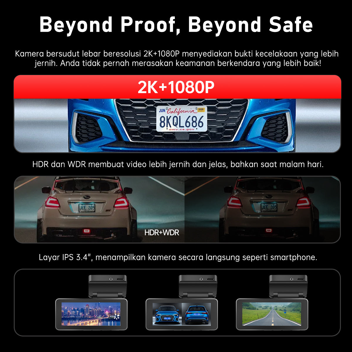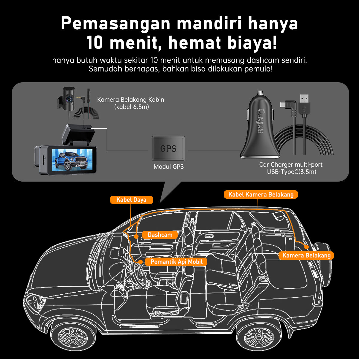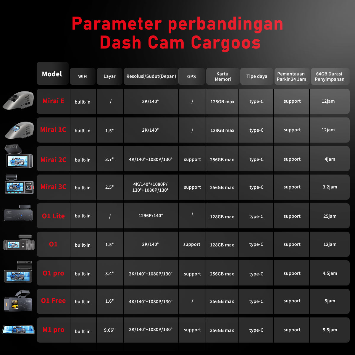 Cargoos O1 Pro Dash Cam Mobil 2k+1080p GPS Wifi G-sensor Night Vision Kontrol Aplikasi Car Dashcam